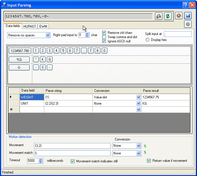- Assign a numeric conversion method to the weight data field.