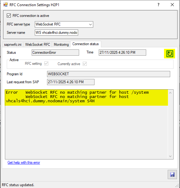 - Trigger the connection test from SM59, it will fail: