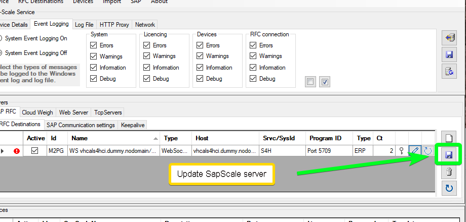 - Update the RFC destinations on the SapScale Server:
