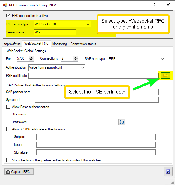 How to configure ERP-Scale for Websocket RFC connections