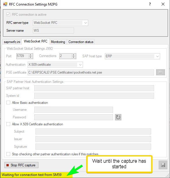 - Wait until ERP-Scale captures the connection and the authentication used: