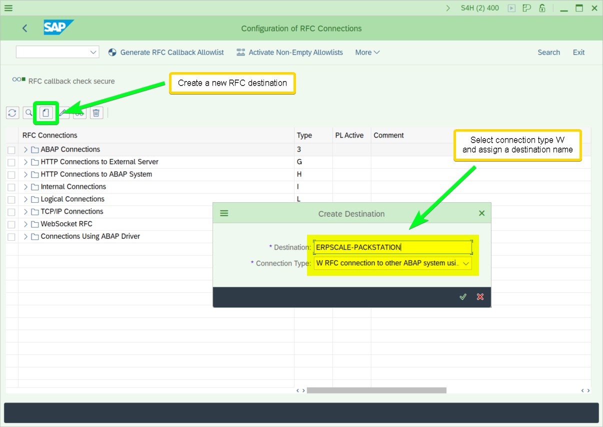 Create a new RFC destination in ERP-Scale